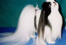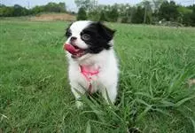 日本狆是极小型犬;被毛长而丰厚,不弯曲;毛色为白色底,带黑色或栗色斑块,斑块颜色越艳越好;斑块以在耳、身、面、尾根左右对称者为佳;头较大而圆,头骨平坦;吻短,鼻尖缩至两眼之间,几乎与眼同齐;眼大而凸出,…全部>>