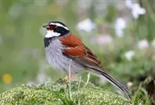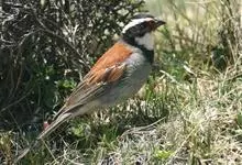 藏鹀:属小型鸣禽。喙为圆锥形,与雀科的鸟类相比较为细弱,上下喙边缘不紧密切合而微向内弯,因而切合线中略有缝隙;体羽似麻雀,此鹀以具有特殊的鲜红栗色背部,及上胸的黑带与下胸的纯灰色等形态特征,…全部>>