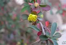 日本小檗是小檗科小檗属植物,落叶灌木,一般高约1米,枝条开展,幼枝淡红带绿色,老枝暗红色;茎刺单一,叶薄纸质,倒卵形、匙形或菱状卵形,花朵组成具总梗的伞形花序,…全部>>
