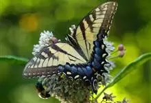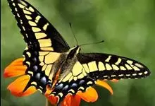 金凤蝶,是鳞翅目凤蝶科凤蝶属动物。金凤蝶为中型凤蝶,翅展70-84毫米,翅背面底色黑褐色,翅脉黑色,翅室具黄斑;前翅背面基部呈暗黄色,亚外缘为黑色,内具一列小黄斑;后翅背面亚外缘区具黑宽边,…全部>>