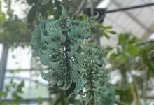 翡翠葛是豆科翡翠葛属植物,多年生常绿大型藤本,茎木质,直径可达30厘米,长可达21.3米。三出复叶,革质光亮,小叶长椭圆形,长7.6-12.7厘米,中间小叶最长。花两性,春季至初夏开花,蓝绿色,…全部>>