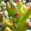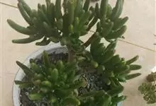 筒叶花月,是景天科青锁龙属的多年生草本植物。植株多分株,灌木状,茎较粗壮,圆柱形,表皮灰褐色;叶片肉质,互生,呈圆筒状,簇生于茎或分枝顶端,叶端呈斜截形,截面为椭圆形;花呈星状,淡白色;花期秋季。…全部>>