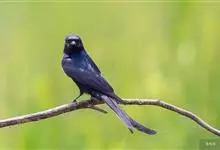 黑卷尾是雀形目卷尾科一属,又称铁练甲、铁燕子、铁林哥、羊蹄刺、榨油郎,体长约30厘米全身蓝黑色而具金属光泽,尾长且分叉较深。幼鸟似成鸟,金属光泽弱,下腹部具近白色的横纹。虹膜暗红色,嘴黑色,脚黑色。…全部>>