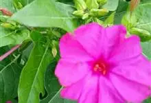 即紫茉莉,英文名:Four-o'clock,Marvel of Peru,为紫茉莉科、紫茉莉属多年生草本植物,一年生栽培。株高50~80cm。根粗壮,茎多分枝而散生。叶对生,卵形或心脏形。花数朵簇生…全部>>