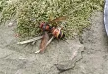 虎头蜂,又名黄脚胡蜂、黄马蜂,是膜翅目胡蜂科胡蜂属昆虫。虎头蜂前胸背板侧面具横皱,后足胫节长刚毛稀少,颅顶黑色或黄褐色,腹部第4背板端部常有1条宽黄带,腹部末端有螫针,连接着毒腺。因为头大得像老虎,…全部>>