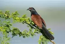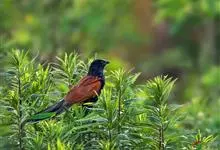 褐翅鸦鹃,是鹃形目鸦鹃科鸦鹃属的鸟类。褐翅鸦鹃的身体为黑色;头颈和胸带蓝紫色金属光泽并具黑亮的羽干纹,下胸至腹部泛金属绿光泽;两翼和肩部为棕栗色,外侧飞羽具暗色羽端,尾羽闪铜绿色光泽;虹膜赤红色,…全部>>