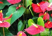 花烛,别名红鹅掌、红掌、安祖花等,为天南星科花烛属的一种多年生草本植物。其茎矮;叶互生,叶片革质,有光泽,阔心形、圆心形,先端钝或渐尖,基部深心形;肉穗花序有细长花序梗,佛焰苞深红色或橘红色,…全部>>