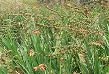 雄黄兰是鸢尾科雄黄兰属多年生草本植物。雄黄兰具扁球径,叶多基生,剑形;花茎由多花给成疏散的穗状花序,花冠漏斗状,深橙红色;蒴果。 花期7-8月,果期8-10月 。雄黄兰因橘红色的花与雄黄颜色相似而得名。…全部>>