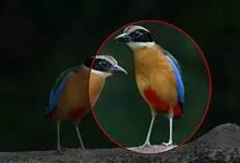 蓝翅八色鸫是雀形目八色鸫科的鸟类。体长17-20厘米,体重类约48-70克,体型圆胖,尾短,腿长,以身体具有红、绿、蓝、白、黑、黄、褐、栗等鲜艳夺目,丰富艳丽的色彩而得名,是很有观赏价值的鸟类。主要…全部>>