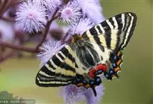 中华虎凤蝶是鳞翅目凤蝶科虎凤蝶属昆虫。双翅颜色为黄底黑纹,色如虎皮;雌、雄斑纹相同,但雌蝶的黄色往往要略深一些;后翅外缘呈波浪状,长有较短的尾突;除翅外,整体黑色,…全部>>