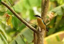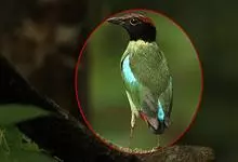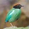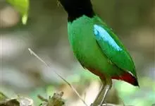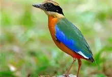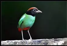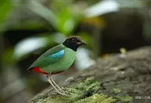 绿胸八色鸫:是雀形目八色鸫科的鸟类,共有12个亚种。体长为16-18厘米,体重65-69克。体型圆胖,尾短,腿长。头黑,上体绿色,两翼深色而具白色斑纹,头顶至后枕深褐,胸及腹部苹果绿,臀亮红。…全部>>
