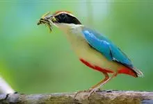 蓝翅八色鸫是雀形目八色鸫科的鸟类。体长17-20厘米,体重类约48-70克,体型圆胖,尾短,腿长,以身体具有红、绿、蓝、白、黑、黄、褐、栗等鲜艳夺目,丰富艳丽的色彩而得名,是很有观赏价值的鸟类。主要…全部>>