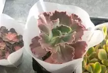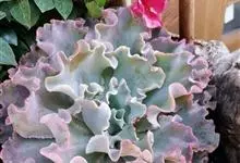 女王花笠,又名扇贝石莲花、女王花舞笠,是景天科拟石莲花属的多肉植物。由美国加利福尼亚州的育种师Dick Wright于1964年培育。特征是呈大波浪状褶皱的红色叶缘和气质高贵的粉紫色调。…全部>>