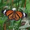 虎斑蝶,Danaus genutia ,是斑蝶属的一种,常见于湿地公园内。雄性虎斑蝶经常伏于吊裙草 上吸食汁液,以制造吸引异性的香气。虎斑蝶翅膀腹面鲜橙色,翅脉和翅边缘黑色,边缘上有两行小白点,…全部>>