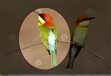 栗喉蜂虎是蜂虎科蜂虎属的鸟类。有热带鸟类羽毛艳丽的特征:喉部是栗红色的,黑色的过眼纹,翅膀和背部是绿色的,尾翼是蓝色的,飞行时翅膀下面的羽毛是橙黄色的,在阳光的照射下,它们全身闪烁着金属般的艳丽光泽,…全部>>