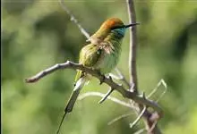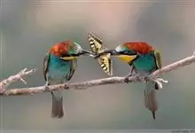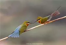 蓝颊蜂虎:是蜂虎科、蜂虎属的鸟类,共有2个亚种。体长27-33厘米,翼展46-49厘米,体重38-50克。嘴形细长而下弯,先端尖,…全部>>