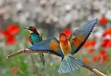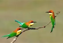蓝颊蜂虎:是蜂虎科、蜂虎属的鸟类,共有2个亚种。体长27-33厘米,翼展46-49厘米,体重38-50克。嘴形细长而下弯,先端尖,…全部>>
