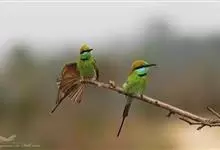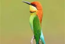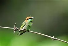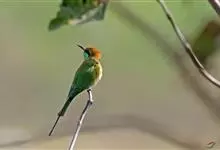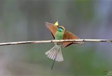 绿喉蜂虎是佛法僧目、蜂虎科的小型鸟类,共有9个亚种。身长22-25厘米,翼展29-30厘米,体重15-20克。喉绿色,额部、头顶至上背为锈红色,其余上体均为亮绿色。中央尾羽延长且端段狭细,…全部>>