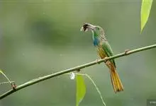 蓝颊蜂虎:是蜂虎科、蜂虎属的鸟类,共有2个亚种。体长27-33厘米,翼展46-49厘米,体重38-50克。嘴形细长而下弯,先端尖,…全部>>
