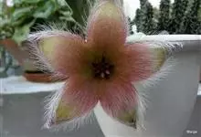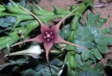 巨花犀角又称大豹皮花,是夹竹桃科犀角属的一种植物。茎粗,花大,边缘生长细毛。植株柱形多分枝呈丛生,柱形具4棱,棱缘具细小疣突。花大,五角星形黄色,并有横向棕褐色斑纹,似豹皮而得名。花期夏秋两季。…全部>>