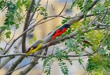 赤红山椒鸟为山椒鸟科山椒鸟属的鸟类,俗名红十字鸟、朱红山椒鸟。雄鸟红色,雌鸟黄色。分布于印度沿喜马拉雅山脉至中南半岛、印度尼西亚、菲律宾以及中国大陆的西藏、云南、福建、湖南、广西、广东、海南等地,…全部>>