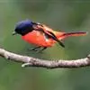 灰喉山椒鸟:共有8个亚种。体长18-22厘米。雄鸟头部和背亮黑色,腰、尾上覆羽和下体朱红色,翅黑色具一大一小的两道朱红色翼斑。中央尾羽黑色,外侧尾羽基部黑色,端部红色。…全部>>