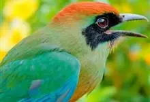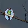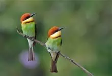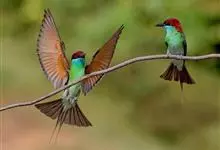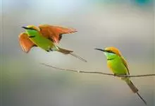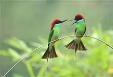 绿喉蜂虎是佛法僧目、蜂虎科的小型鸟类,共有9个亚种。身长22-25厘米,翼展29-30厘米,体重15-20克。喉绿色,额部、头顶至上背为锈红色,其余上体均为亮绿色。中央尾羽延长且端段狭细,…全部>>