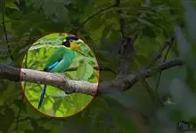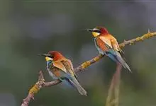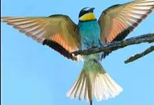 蓝喉蜂是蜂虎科蜂虎属鸟类。体长26-28厘米,嘴长而弯曲,有明显细长的中央尾羽。头部、颈部和背部为巧克力色,有黑色眼纹。喉部、腰部和尾羽为蓝色。腹部和两翼为绿色。幼鸟外观似成鸟,头部、颈部和背部为绿色,…全部>>