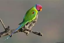 紫红头鹦鹉是鹦形目鹦鹉科的鸟类。鸟体为绿色,头部中间为红色,下颏下方延伸到脸颊下方,环绕整个颈部有一条黑色的环状羽毛,并连接一条蓝绿色的条状羽毛。…全部>>