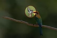 青带凤蝶Graphium sarpedon ,又名青凤蝶,是最普遍的中型凤蝶,飞行速度很快。青带凤蝶的翅膀中央有许多浅蓝色的斑点,很整齐地排列成一条直线。这些斑点由上而下逐渐变大,就像一条青色的带子。全部>>