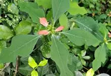 猩猩草:常绿或半常绿灌木,盆栽时株高0.5米-2米,在亚热带地区可长到6米以上。茎直立而光滑,单叶互生,卵状椭圆形至阔披针形,具不规则的深缺刻。长10-15厘米。花小,有蜜腺,排列成密集的伞房花序。…全部>>