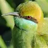 绿喉蜂虎是佛法僧目、蜂虎科的小型鸟类,共有9个亚种。身长22-25厘米,翼展29-30厘米,体重15-20克。喉绿色,额部、头顶至上背为锈红色,其余上体均为亮绿色。中央尾羽延长且端段狭细,…全部>>