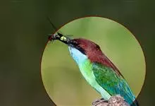 蓝颊蜂虎:是蜂虎科、蜂虎属的鸟类,共有2个亚种。体长27-33厘米,翼展46-49厘米,体重38-50克。嘴形细长而下弯,先端尖,…全部>>