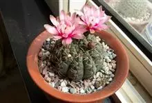 绯花玉 Speg.)是仙人掌科、裸萼球属多肉植物,植株呈扁球形,表皮墨绿色,刺针状,每个刺座有5枚灰色周刺,花生于球体顶端,夏季开花,花色有白、粉红、深红等。果实纺锤形,深灰绿色,种子黑色。…全部>>