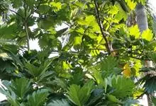 面包树 Fosberg)是桑科波罗蜜属植物。叶大,成熟之叶羽状分裂,表面深绿色,背面浅绿色;穗状花序单生叶腋,雄花序长圆筒形至长椭圆形或棒状;聚花果倒卵圆形或近球形;花期为3~5月,果期为7~10月。…全部>>