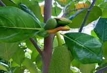 菠萝蜜是桑科波罗蜜属常绿乔木。老树常有板状根;叶革质,螺旋状排列,椭圆形或倒卵形;花雌雄同株,花序生于老茎或短枝上;果椭圆形至球形,成熟时黄褐色,核果长椭圆形;花期3-8月,果期6-11月。…全部>>