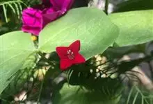 橙红茑萝是旋花科虎掌藤属的一年生草本,又称圆叶茑萝,茎缠绕,平滑,无毛;叶心形,骤尖,全缘,或边缘为多角形,或有时多角状深裂,叶脉掌状;叶柄细弱,几与叶片等长;聚伞花序腋生,总花梗细弱,较叶柄长,…全部>>