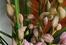 兰花:附生或地生草本,叶数枚至多枚,通常生于假鳞茎基部或下部节上,二列,带状或罕有倒披针形至狭椭圆形,基部一般有宽阔的鞘并围抱假鳞茎,有关节。总状花序具数花或多花,颜色有白、纯白、白绿、黄绿、淡黄、…全部>>