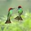 蓝颊蜂虎:是蜂虎科、蜂虎属的鸟类,共有2个亚种。体长27-33厘米,翼展46-49厘米,体重38-50克。嘴形细长而下弯,先端尖,…全部>>