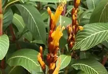 金苞花是爵床科、金苞花属的常绿草本植物。叶长圆形或披针形,先端渐尖,基部通常楔形,下面主脉被微柔毛;顶生穗状花序由密、短的总花梗组成,卵形苞片膜质,下部的近心形,小苞片披针形或匙形,与花萼等长,…全部>>