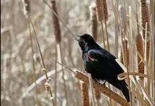 红翅黑鹂,是美洲黑鸟中最出名的是红翅黑鸟,体长19-24厘米,翼展30-37厘米,体重65克,春天雄鸟羽色翅膀上端橘红色连带小块白色,似大帅的红色肩章,头部及爪呈深蓝光泽,所有的羽毛都呈蓝黑色,…全部>>