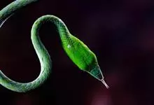 绿瘦蛇是游蛇科,瘦蛇属轻毒性后沟牙毒蛇。体型极细而长,长可达1.5米。头较窄长,与颈区分极明显;吻端略圆而平扁,超出下领;眼大,瞳孔呈一横缝;颊区呈一凹槽;躯干瘦长侧扁,尾甚长而细。背面鲜绿色,…全部>>