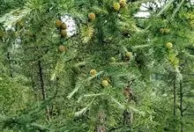 杉木 Hook.)是柏科杉木属高大乔木。株高大;树皮灰褐色裂成长条片,内皮淡红色;大枝平展,小枝对生或轮生,幼枝绿色,光滑无毛,冬芽近球形,具小形叶状芽鳞;叶披针形或窄;雄球花圆锥状,绿色;球果卵圆形,…全部>>