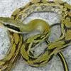绿瘦蛇是游蛇科,瘦蛇属轻毒性后沟牙毒蛇。体型极细而长,长可达1.5米。头较窄长,与颈区分极明显;吻端略圆而平扁,超出下领;眼大,瞳孔呈一横缝;颊区呈一凹槽;躯干瘦长侧扁,尾甚长而细。背面鲜绿色,…全部>>