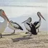澳大利亚鹈鹕是一种大型涉禽,体重达13千克。生活于沿海及河川、湖泊等处。飞行力强而悠逸,常群飞群栖,极善于游泳,但不会潜水。游泳时张口捕鱼,将捕得的鱼兜入喉囊内。有时结群,排成长线,…全部>>