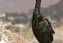 黑颈鸬鹚,中型水鸟,体长50~51厘米。繁殖期通体黑色,缀有深蓝色和蓝绿色光泽;肩、内侧次级飞羽及翅覆羽暗银灰色,羽缘黑色;头顶、头的两边和颈缀有少许白色丝状羽;枕部和后颈有轻微的短的羽冠。主要以鱼…全部>>