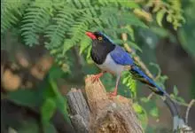 红嘴蓝鹊,别名山鹊、长尾鹊,是鸦科蓝鹊属的一种观赏性较强的大型鸣禽。该物种为体长54~65cm,头、颈、喉和胸黑色,头顶至后颈有一块白色至淡蓝白色或紫灰色块斑,其余上体紫蓝灰色或淡蓝灰褐色。尾长呈凸状,…全部>>
