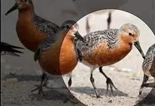 红腹滨鹬,是鹬科、滨鹬属的小型涉禽,体长23-25厘米,嘴较短而直、黑色,脚亦甚短、绿色。体较粗胖。夏季上体灰褐色具黑色中央纹,背具棕栗色和白色斑纹和羽缘,头侧和整个下体栗红色。冬季棕红色消失,…全部>>