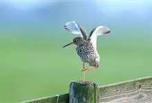 红脚鹬:体长28厘米,上体褐灰,下体白色,胸具褐色纵纹。飞行时腰部白色明显,次级飞羽具明显白色外缘。尾上具黑白色细斑。虹膜黑褐色,嘴长直而尖,基部橙红色,尖端黑褐色。脚较细长,亮橙红色,…全部>>
