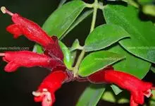 口红花 G.Don)是苦苣苔科,芒毛苣苔属常附生小灌木,茎长可达100厘米,圆柱形,叶对生,叶片革质,花数朵簇生茎或短枝顶端,花萼钟状筒形,花冠桔红色,裂片中央有暗紫色斑,花盘环状,蒴果线形,…全部>>